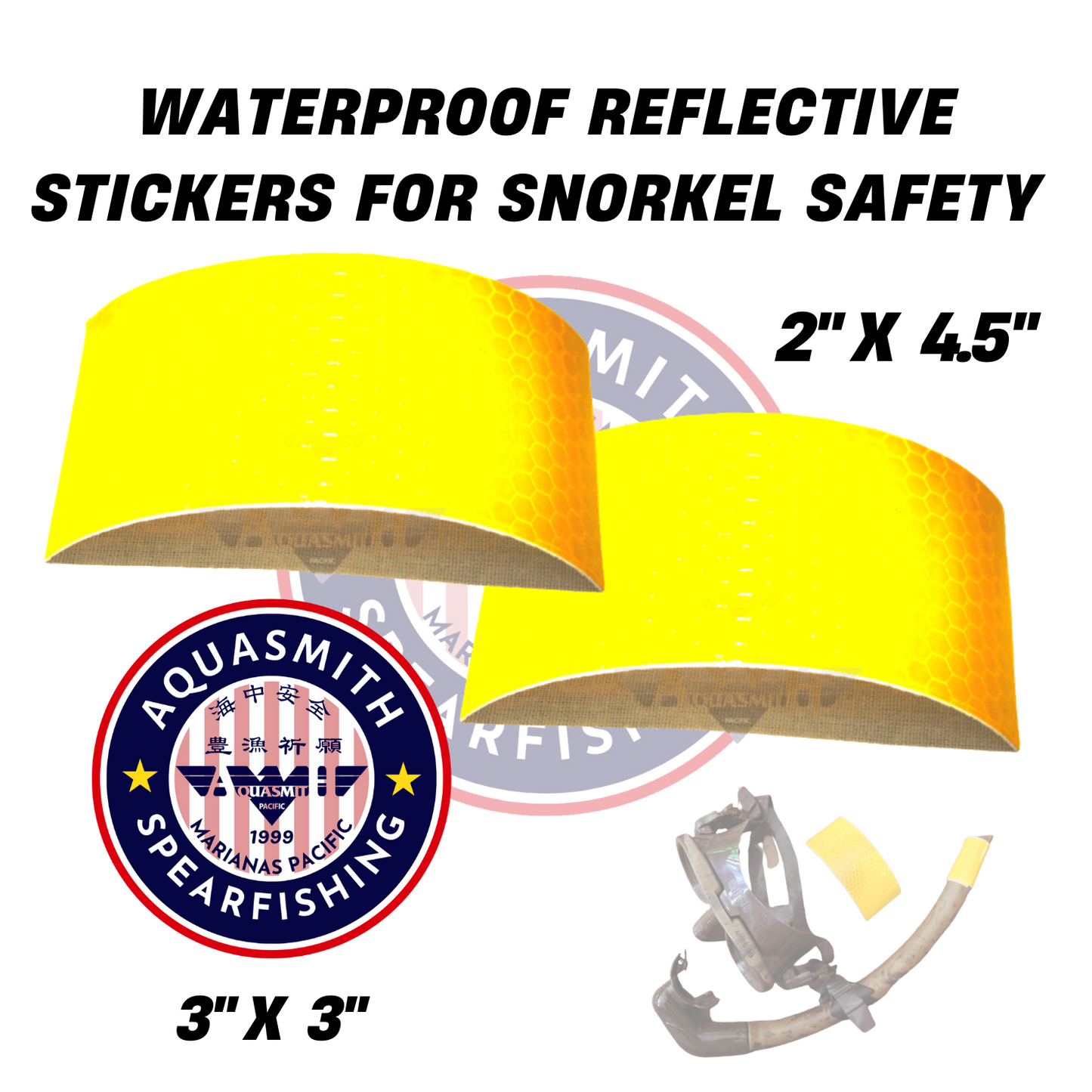 Waterproof Reflective Stickers for Snorkel Safety (Set of 2 + AQUASMITH Sticker)