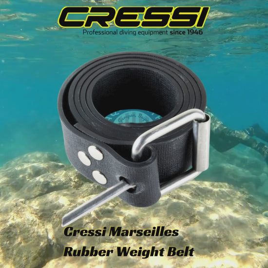 The Premium Marseillaise Belts allows the freediver to snug up the belt at the surface and forget it while going deep underwater. It is manufactured with a high stretch rubber to keep your weights comfortably in proper position during ascents and descents. The high elastic properties of the belt will contract and compress with your body and wetsuit during your descent and expand and stretch as your body and wetsuit expand during ascent keeping your weight belt properly positioned around your hips. The Marseilles style buckle is made of heavy-duty corrosion-resistant stainless steel, is attached to the belts with stainless steel rivets and is designed for a quick release if necessary. Belts will except hard block or soft pouch weight pockets.