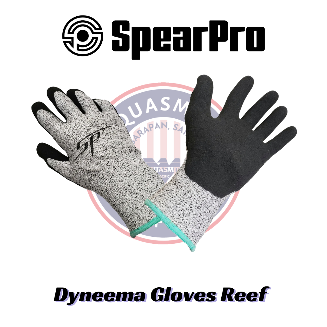 Designed and used by professional spearos, the SpearPro Dyneema Reef Gloves are ready for any situation. Dyneema is 8x more abrasion resistant than kevlar and is currently the toughest fiber in the world. Manufactured with level 5 Cut resistance, nitrile coated palms / fingers, plus a tight, tapered fit for ideal grip.